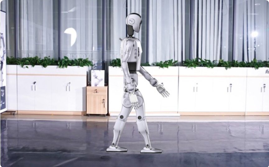 • 更靈巧的身體:首先,DOBOT Atom機器人擁有重復定位精度達±0.05mm的工業級仿生協作臂,具備41個自由度,能適應常見工作臺高度進行靈巧作業。其次,Atom實現了“手-眼-腳”協同,通過多模態傳感技術,能擬人化執行工廠開門、在狹窄空間靈活轉身,并自適應抓取柔軟或異形物體。最后,得益于直膝行走技術,其仿人直膝行走系統(AWS)能耗較傳統屈膝式降低42%,大幅提升了機器人的連續運行時間。